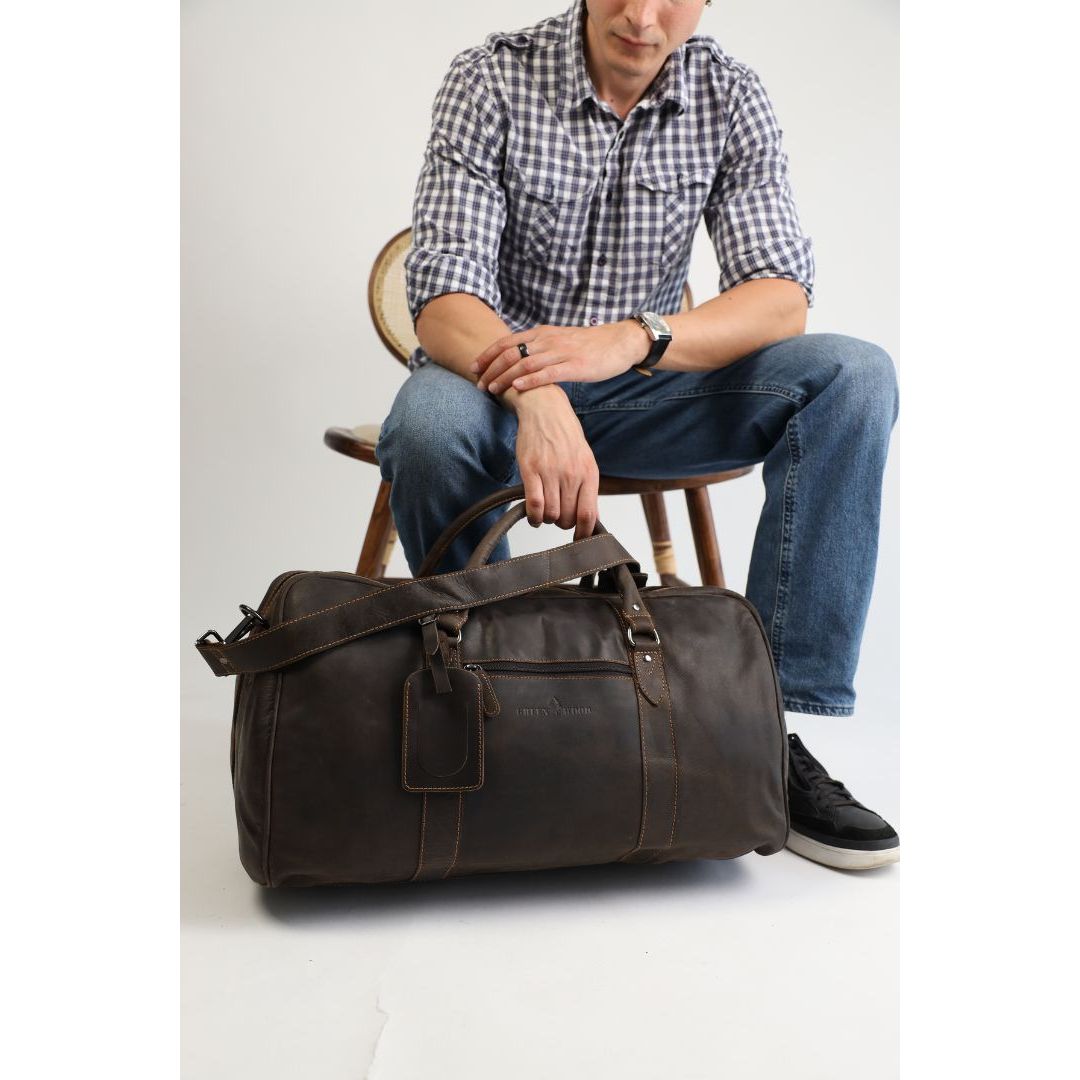 The Wilson Casual Travel Bag (GW12795) from Greenwood Leather is the perfect companion for holidays, weekend getaways, or countryside adventures. Crafted from genuine wax pull-up leather in a stylish Brown colour, this medium-sized leather weekender combines durability, functionality, and timeless design.