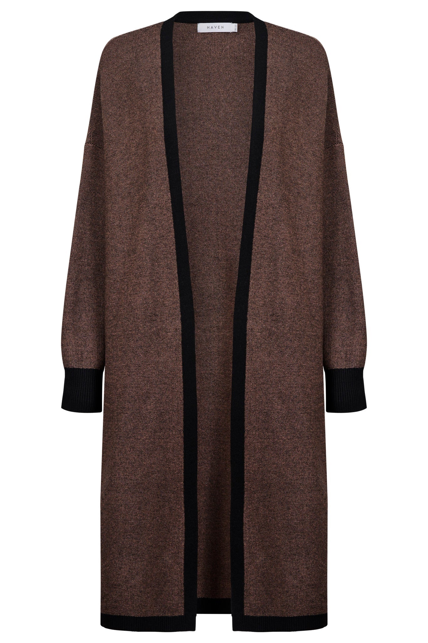 A modern knit layer with bold contrast detailing. The Monterosa Cardigan features a longline silhouette with duotone trims that add structure and interest. A statement cardigan that still feels effortless.