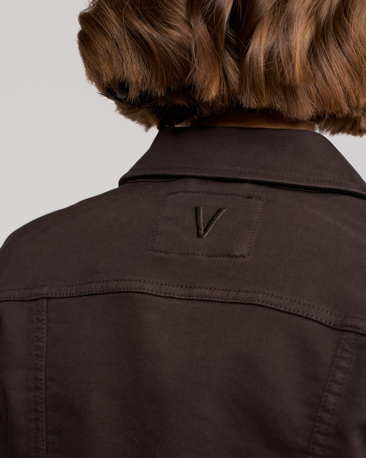 A classic button-up jacket made from our soft, velvety moleskin-inspired stretch fabric in a rich chocolate brown. Designed in a relaxed fit, this style features metal ‘V’ logo jean buttons, chest pockets, and adjustable tabs at the back waist for versatile shaping. Finished with ‘V’ embroidery at the centre back neck.