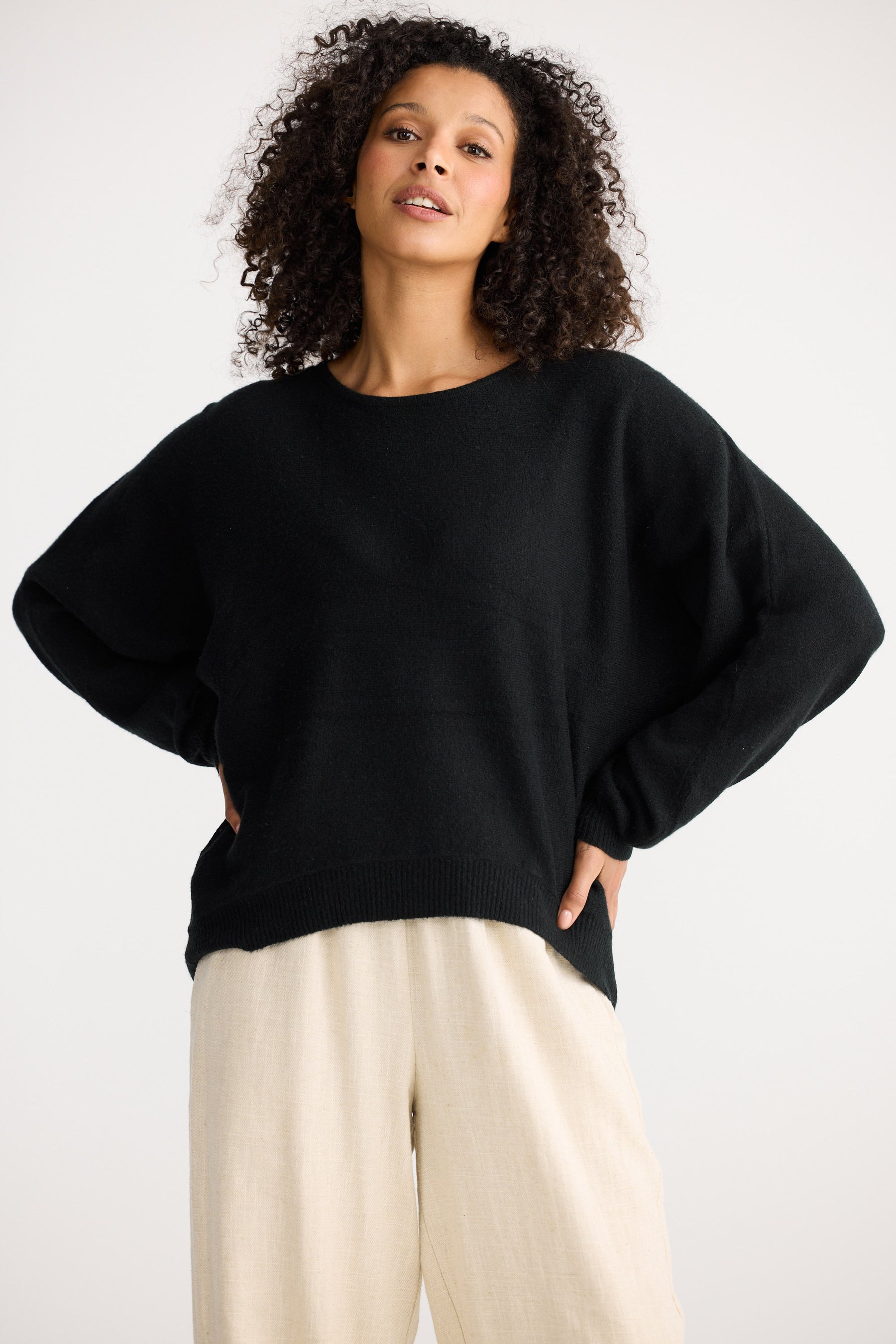 • Batwing sleeve ribbed hemline and cuff