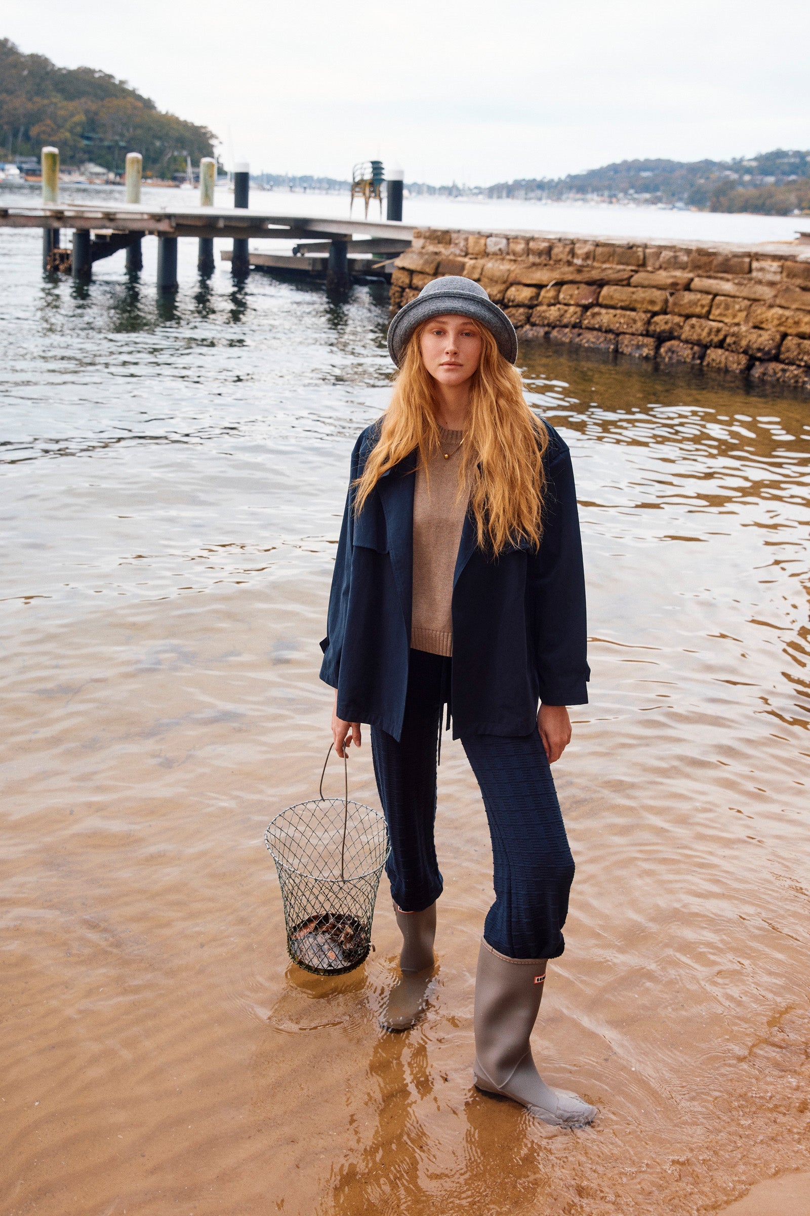A modern cropped trench crafted from brushed cotton for a soft, textured hand-feel. The storm flaps and notched collar bring classic trench detailing, balanced by a self-fabric belt that lets you shape the waist as you choose. Welt pockets and clean tailoring make it a versatile winter layer.